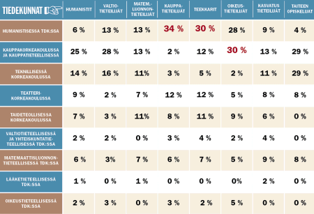 Kuinka tupakkateollisuudella menee akateemisessa maailmassa? Huonommin kuin Suomessa yleensä. Opiskelijoista vain joka viides tupakoi, mutta poikkeuksellisia savuttajia löytyy taideaineiden piiristä, siellä joka toinen savuttelee. Nuuskan asema oli erityisen vahva oikeustieteellisessä.