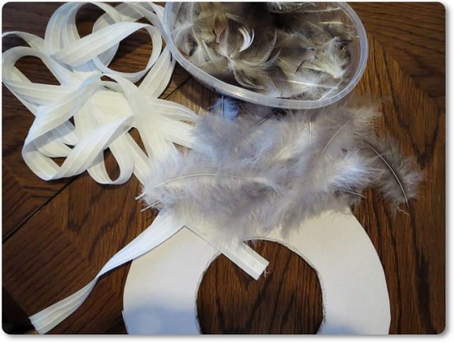 Tarvikkeet: -Pahvia -nauhaa (tai vanhoista lumpuista leikattua kudetta) -sulkia ja höyheniä -kuumaliimaa Leikkaa ensin ympyrä ja keskelle myös reikä. Kierrä nauhaa tai kudetta kuumaliimaa apuna käyttäen pahvirenkaan ympärille. Sen jälkeen…
