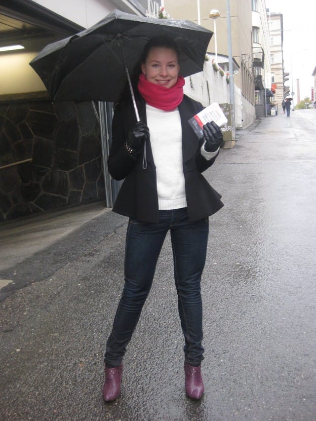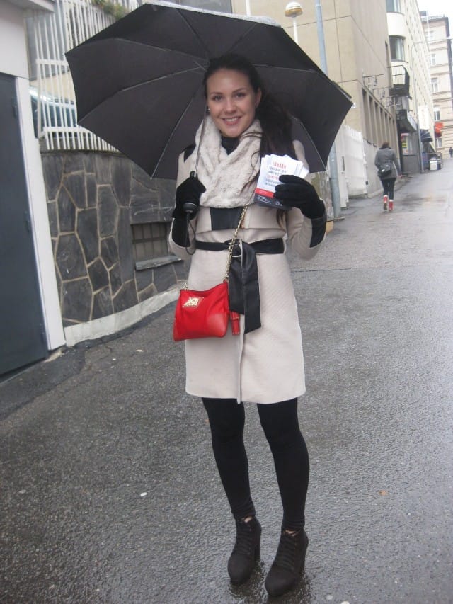 Oona 19, media ja kuvataiteen opiskelija Riihimäeltä, käymässä Tampereella Tykkään pukeutua fiiliksen mukaan. Yhdistelen kirkkaita värejä turvallisiin väreihin. Kirppiksiltä tekee parhaat löydöt. Punaiset huulet on mun juttu!
