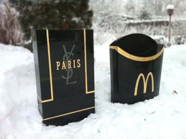 Jani Leinosen McDonald’s-aiheisia teoksiaan Showroom Helsingissä joulukuussa 2010. Leinonen on kiistänyt osallisuutensa Ronaldin kaappaukseen Voima-lehden verkkosivulla