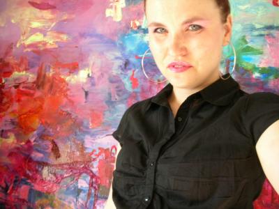 Olin kai vahingossa tahallani laittanut maalikuvan osioon Paljasta pintaa. Sitähän maalaus on, plastikkiakin se nimen omaan on: akryyliväri on muovia. Tietenkin taiteilijan on hyvä rakastaa materiaaliaan, vaikka pukeutua siihen välillä niin kuin kerran tein: muotoilin mekon pinkistä maalikalvosta. Silloin tällöin tapaan saarnata pyhää kolminaisuutta: taiteen, uskonnon ja seksin ykseyttä. Tämän opin mukaisesti suhteeni muovimaaliin voidaan toki määritellä fetisistiseksi.