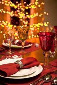 Juhlallisesti katettu joulupöytä.