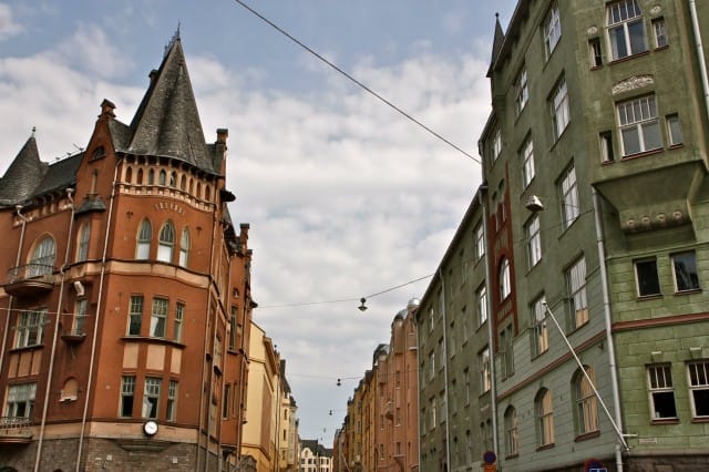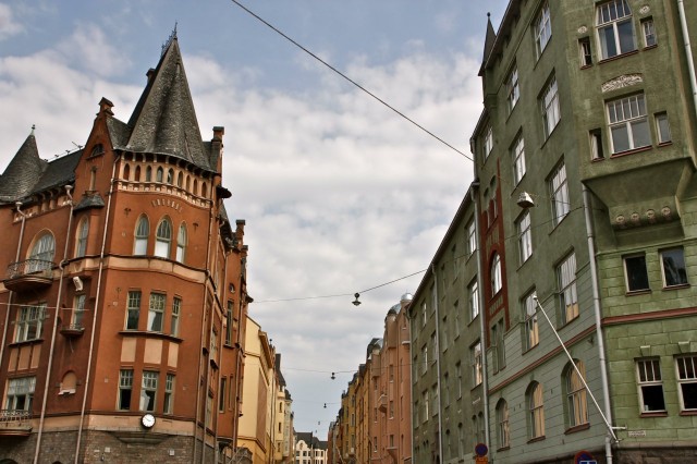 Uspenskin katedraalilta jatkan matkaa kohti Katajanokkaa. Mäen alla menee taas raitiovaunu numero 4, mutta pääsen tästä jo hyvin kävellenkin. Kiertelen Katajanokalla pitkin poikin. Talot ovat pääosin kauniita jugend-taloja. Täällä sijaitsee ehdottomasti osa Helsingin kauneimmista rakennuksista. Miksei täällä voisi olla enemmänkin kivijalkaliikkeitä ja elämää?