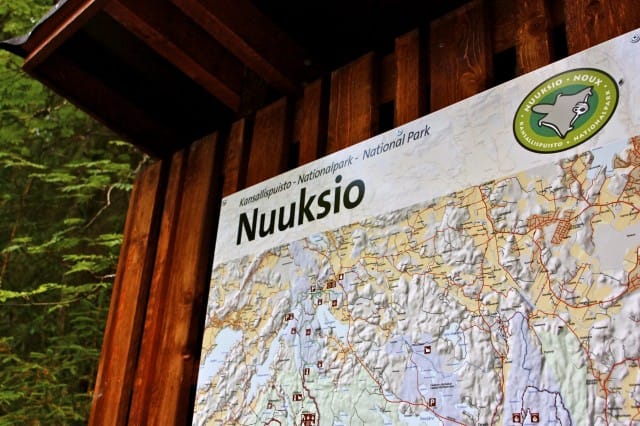 Nuuksion kansallispuiston alueella on lukuisia eri reittejä, joista jokainen voi vapaasti räätälöidä omansa. Reitit alkavat heti tien toiselta puolelta ja minä päätän lähteä Haltialta kohti Haukkalampea. Edessä olisi 4,4 kilometrin vaellus Haukkalammelle ja sen jälkeen voisin kierrellä lammen ympäristössä.