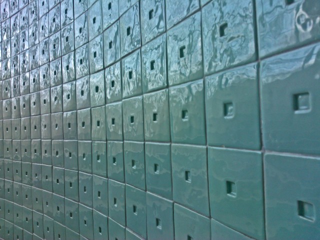 Niin oppilaat valmistivat pankille kolme vuotta kauniita seinälaattoja ja pankki maksoi heille. Arkkitehti ei saanut tästä mitään taloudellista hyötyä, vain kauniit ja ainutlaatuiset seinät suunnittelemaansa varsin kauniiseen taloon. Laatat ovat erilaiset eri kerroksissa.