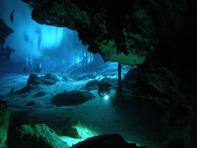 Lava-auto parkkeeraa vedenalaisen [URL=http://en.wikipedia.org/wiki/Cenote]cenote-luolan[/URL] sisäänkäynnin viereen. Vedenalainen luolaverkosto ulottuu kymmenien metrien syvyyteen. Vesi on kristallinkirkasta ja lämmintä. Luolissa uiskentelee pieniä, sokeita kaloja, mutta pääasiassa ihmiset sukeltelevat cenoteissa tippukivimuodostelmien vuoksi. Suuaukon jälkeen kaikkialla on pimeää, ja vedenalaiset taskulamput tulevat tarpeeseen. Jossain kohtaa nousen satunnaisessa luolassa pintaan ja sohaisen kattoon taskulampulla. Minua katsoo takaisin tuhansia silmäpareja lepakoita. Muutama lähtee lentämään päämäärättömästi ympäriinsä. Pienessä tilassa hallitsemattomasti lentelevät lepakot aiheuttavat pientä paniikkia, vaikkeivat ne hyökkäyshaluisilta vaikutakaan. Retreat.