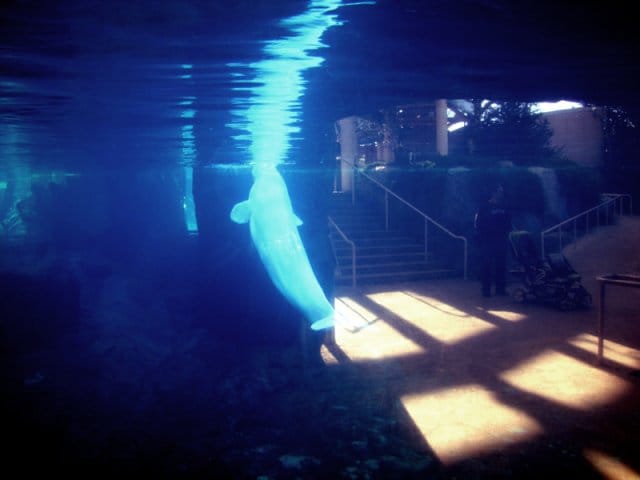 (kuvassa maitovalas akvaariossa vähän Mysticin ulkopuolella, jonne ehdin myös)