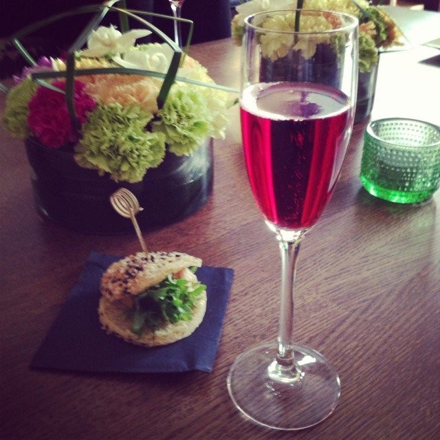 Klaus K:n uudessa LIVINGROOM lounge-tilassa haukattiin slider, eli minihampurilainen, sekä puolukkakuohuvaa. Täydellinen after work -asetelma!