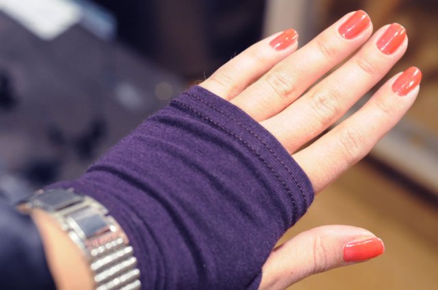 Ja parhaimmiltahan kynsikkäät näyttävät, kun kynsissä on lakkaa – klassinen punainen toimii aina.