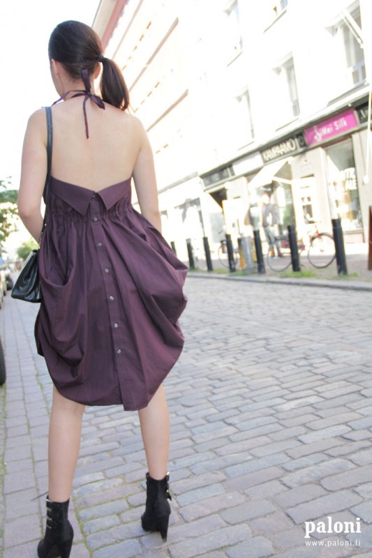 Itse olen pistänyt Ainokaiselta tilaukseen kierrätetyistä pitsiliinoista valmistetun irtokauluksen (siinäkin on yllättäen jotain samettista) ja Firsh Crushilta haaveilen edelleen miesten kierrätetyistä kauluspaidoista valmistetusta nerokkaasta [I]Rea[/I]-mekosta, tällaisesta näin: