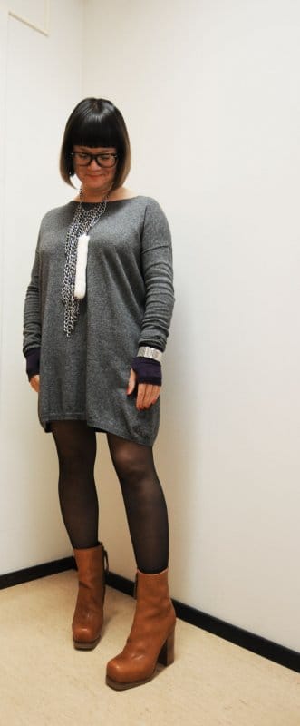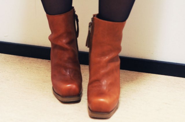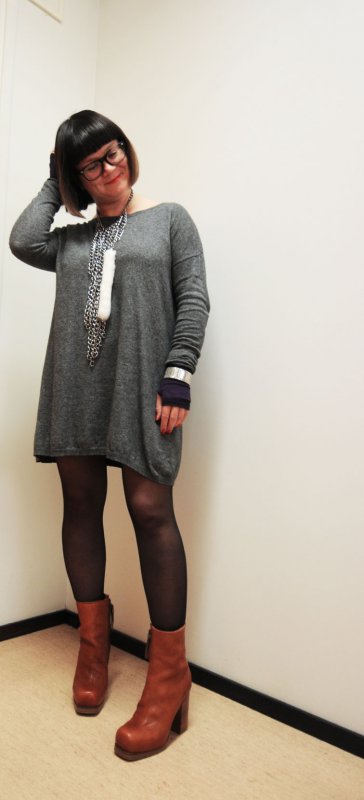 Yksinkertaisen neulemekkosen kaveriksi ei tarvita kuin huomion varastavat kengät, jotka itse asiassa varastivat sydämeni alkusyksystä. Kun [B]Acnen[/B] [I]Rise[/I]-nilkkurit tulivat vastaan useamman kymmenen prosentin alennuksessa ja ne näyttivät ystävänkin mielestä aivan minulta, ei tohtinut jättää niitä taakseni. Loistavat nilkkurit syksyyn, ja Acnen kengät ovat tunnetusti hyvälaatuisia ja miellyttäviä jalkaan.
