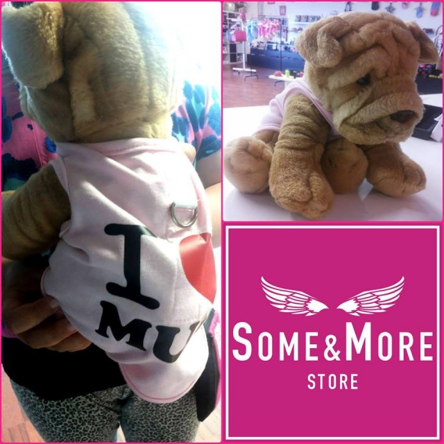 Meillä kävin eilen tytöt shoppailemassa lelukoiralle vaatetta. Harness- paita oli kaikkein mieleisin, pinkki tietenkin 😉 [quote]Lukeeko tässä oikeesti (I<3Mum), että rakastan äitiäni?[/quote] Kyllä siinä lukee! Tytöt poikkesivat jätskillä Apsilla ja minä vahdin pehmokoiraa sillä välin. Toihan on tosi hyvää harjoittelua lapsille ennen oikean koiran hankkimista. Eihän sitä oikeetakaan koiraa voi viedä Apsille jätskille mukaan 😉