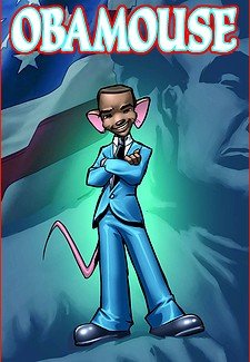 Sarjakuvassa kerrotaan, millainen Obama olisi, jos hän olisi supersankarihiiri. Ensimmäinen vitsi: Obamalla on isot korvat, vähän niin kuin hiirellä! Heh heh, kässäättekö? Hiirellä!