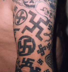 Toisaalta hakaristi on nyt pahuuden logo, samalla tavalla kuin väärinpäin risti ja aikoinaan merirosvojen pääkallo ja sääriluut. Niin kauan kuin on pahuuden symboleita, ja niin kauan kuin ne herättävät pahennusta, kaikenlaiset ääliöt piirtävät niitä nahkatakkeihinsa ja tatuoivat niitä käsivarsiinsa (enkä nyt viittaa ManWomaniin). Natsismin tehokas logo houkuttelee tutustumaan myös brändiin ja sisältöön. Ja brändätähän natsit osasivat.