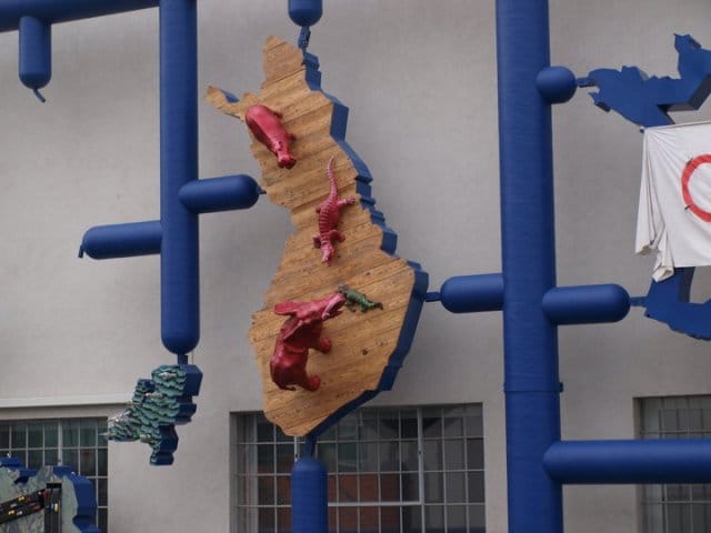 Suomen kartalla on sotilas, vaaleanpunainen norsu, vaaleanpunainen krokotiili ja vaaleanpunainen virtahepo. Häh?