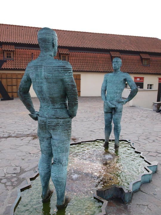 Prahan kävijät muistavat myös [I]Quo Vadis[/I] -teoksen, jossa Trabant on saanut jalat alleen, sekä todella häiritsevät isot mustat vauvat, joita ryömii ympäri Prahaa, muun muassa ylös tv-tornia. Itse kävin hiukan syrjäisemmässä galleriassa työntämässä pääni jättiläismäiseen perseeseen, jossa esitettävällä videolla presidentti [B]Václav Klaus[/B] ja kansallisen taidemuseon johtaja syöttävät toisilleen vauvanruokaa.
