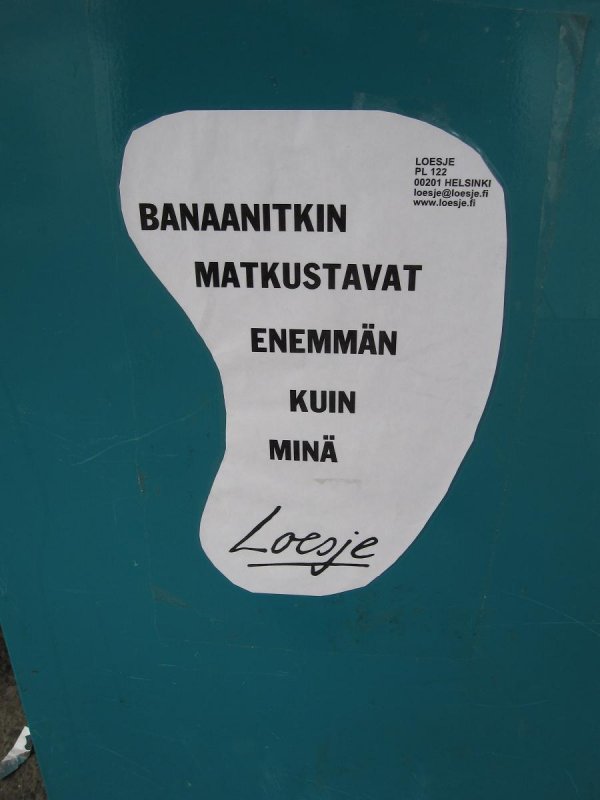 Parin yön valvomisen jälkeen tavoitin jotain hauskalla tavalla paikkaansa pitävää, jonka halusin ehdottomasti jakaa täällä. Kyseessä Joensuu ja Ilosaari, banaanit ja Loesje: