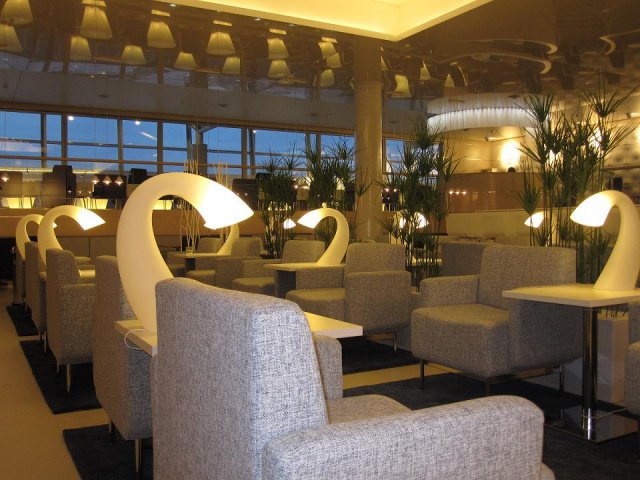 Erilaisten saunojen lisäksi kuudensadan neliön kylpylässä on mm. jokea ja sen pohjaa muistuttava viileä kahluuallas (tai no hyvin kylmä ilman lentorasitusta vilvoittelua kokeilleelle). Plussana kasvo- ja vartalohoitoja sekä taulut, joista näkyvät lentojen lähdöt, myöhästymiset ja peruutukset.