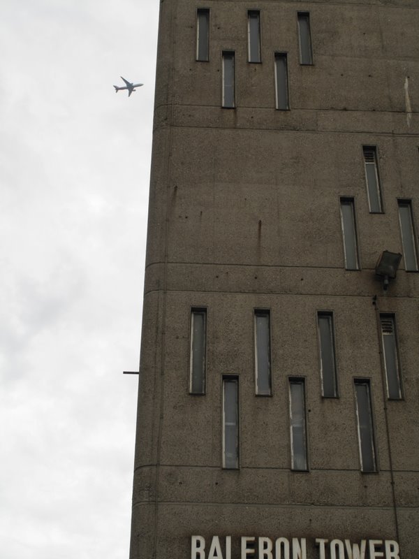 Tämä allaoleva on ehkä Lontoon kaunein kerrostalohirviö joka on Wikipedian mukaan ollut myös Oasiksen ”Morning Glory” -videossa. Onnistuin kuvaamaan 27-kerroksisen Balfron Towerin sekunti ennen matkustajakoneen kuvitteellista uppoamista sen kaksoistorneihin.