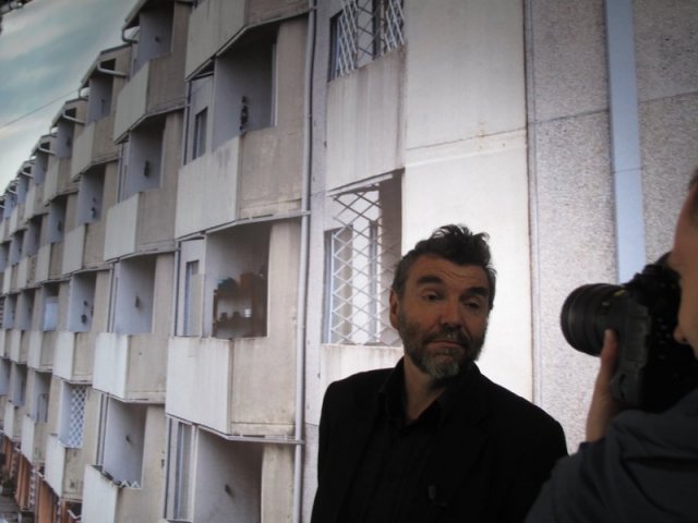 Kyseessä on vanha varastohalli jonne on lavastettu kokonainen kaupunginosa.Tai ainakin pala siitä. Röyhkän takana näkyvä iso kerrostalosermi näyttää varmaankin aidolta elokuvassa. Jo tässä kuvassa on vaikea erottaa aitoa parveketta pelkästä wannabe-parvekkeesta. Minulle kerrotaan että Röyhkän romaaniin perustuva elokuva sijoittuu Ouluun, mutta että tämä kattoa hipova feikkikerrostalo on itseasiassa kuvattu Helsingissä, Jakomäessä.