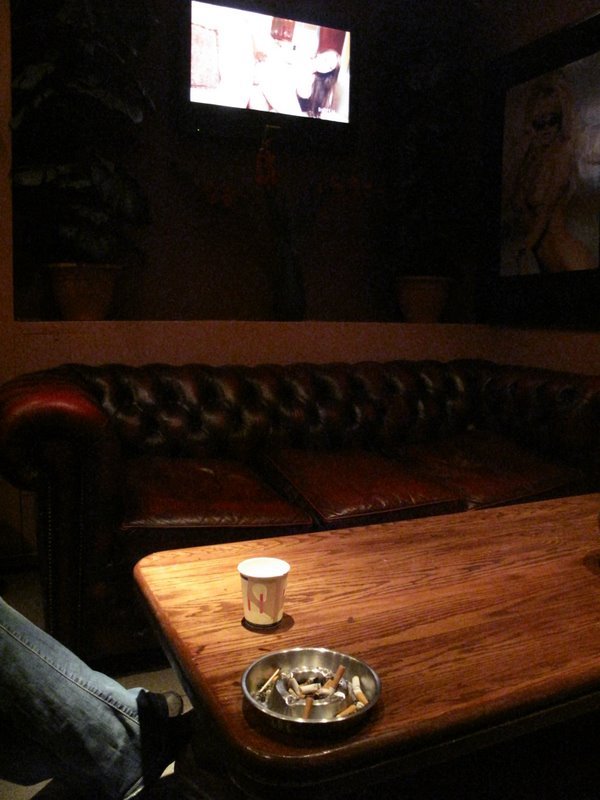 Näyttää siltä että pornoteatterissa aika on pysähtynyt. Designin kulmakivet: aulassa killuva kahviautomaatti, punainen haiseva chesterfield-sohva, Huhtamäki Oy:n 1960-luvulla kehittämä korvallinen pahvipikari ja tietenkin käsipyyheautomaatti. Pöydällä on tuhkakuppi. Täällä saa polttaa. Ja vaikka tila muistuttaa terveyskeskuksen aulaa muovisine koristekukkineen, suorittaa mies tv-ruudulla kuin huomaamatta cunnillingusta.
