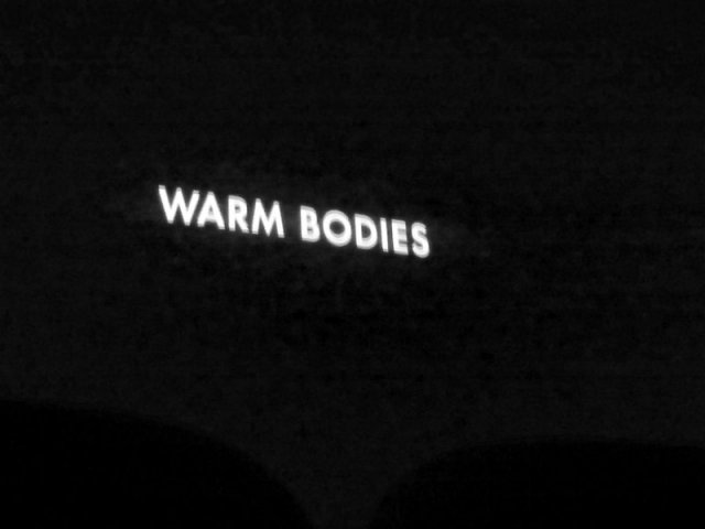 Elokuvateatterin ulkopuolella huomaan, että eräs tuttava on soittanut. Warm Bodiesin jälkeen minulla on yhtäkkiä tarve maistaa päätä. Ja mikä sattuma vanha juoppo soittaa juuri sopivasti! Juhuuuu! Vedämme seitionhuet päiväkännit auringonpaisteessa. Just R! Ole vain olemassa! Olen katarttisessa identifikaation tilassa. Olen saanut tartunnan. Lopun päivää olen tosielämän zombi, laulan raitiovaunussa juoppokaverini, toisen tosielämän zombin kanssa ja ihmiset juoksevat pakoon meidät nähdessään.