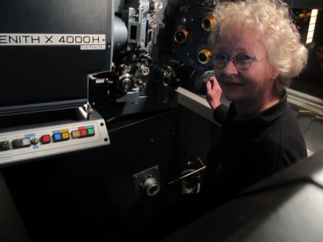 ”Siinä niitä laatikoita on” Elokuvakoneenkäyttäjä Marja Järviö, 55, sanoo. Hän hölskyttelee teipattuja filmilaatikoita jotka ovat saapuneet meren takaa lentokoneella. Elokuvakoneenkäyttäjän alkupalkka vuonna 2005 oli 7 euroa. Tuntipalkka on nyt 8,13€ tunnilta. Yhden kelan arvo tekstityksineen on noin 1000 euroa, joten on parasta käsitellä keloja kieli keskellä suuta.