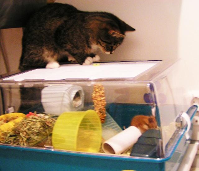 Minullapa on uusi heppu. Sillä on valtavan isot pallit. Nuoreen ikäänsä nähden jopa suhteettoman suuret. Likka tuijottaa heppua intensiivisesti. Syvää kulinaristista mielenkiintoa tuntien. Niin, Likka on kissa ja Heppu hamsteri.