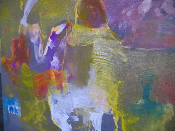 Uusi pohja on valmis. 165x235cm. Vahvat puut, paksu kangas. Pinoan kaikki muut taulut nurkkiin, typerät pikkuneliöt, hävetkää! Toisena päivänä kävelen työhuoneelle, mietin ensimmäistä väriä. Rakennustyömaan kohdalla kappale keltaista pahvia kiinnittää…