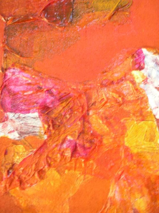 Kannan tauluja tuomiolle alakerran pohjoisvaloon. Päätän oranssin maalauksen (3/2007) valmiiksi. Kriteerit: voima, hehku, lennokkuus, liike sekä sopusointu ja säröttömyys. Uskallan todeta Dinan sanoin ”toimii kuin häkä”. Äsken korjasin jokusen pienen…