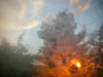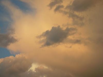 Pohjoinen aurinko paistaa saunaankin vielä. Hongat hehkuvat nyt seinässä. Ooh, mitkä pilvet! huomaan.