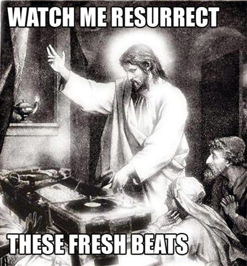 Jeesus dj:nä 13.5.2011 00:43 Walter de CampTsekatkaa: Olen noussut kuolleista Tsekatkaa: nousen kuolleista. Edellinen kirjoitusKäyvätkö pariskunnat thaihieromoissa?Seuraava kirjoitusOlen terve fetisisti!