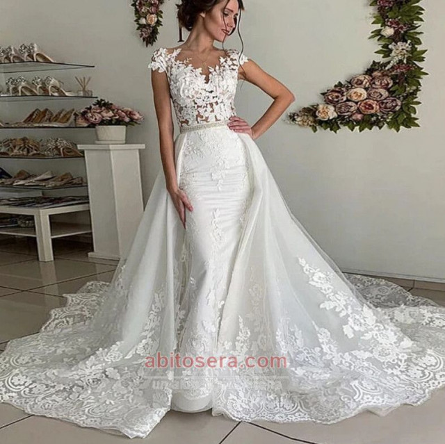 Tradizione e originalità di Abitosera.com, ci aspettava una sorpresa. Uno stile semplice, senza superficialità, adatto ad una sposa naturale che mostra tutto il suo fascino. Il taglio è dritto per sublimare la silhouette, una leggera apertura sulla schiena o sulle gambe, adatto per un abito da sposa casual che realizza i nostri sogni. Piaceranno alle spose con personalità che cercano abiti dalla forte personalità.