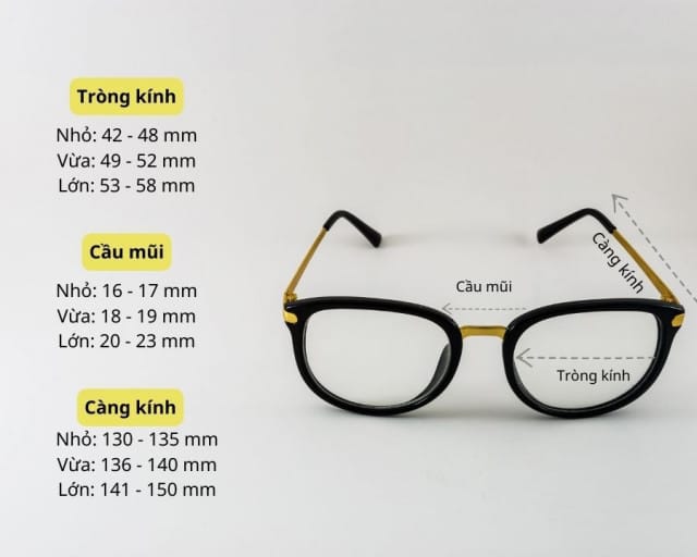 Cuối cùng chính là kích thước kính, ngày nay kiểu dáng đa dạng từ bản to, mảnh, oversize, từng khung sẽ có ưu nhược điểm riêng. Để biết size tương ứng đầu tiên bạn phải hiểu mặt mình to, nhỏ, trung bình từ đó giúp chọn được chiếc kính hoàn hảo nhất.