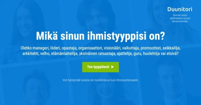 [url=http://duunitori.fi/tyyppitesti/][b]Tee Duunitorin Tyyppitesti »[/b][/url]