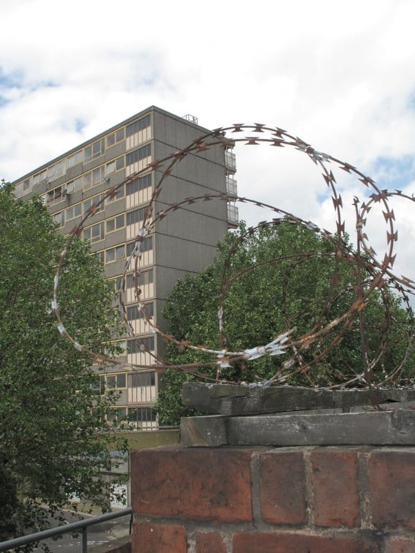 Lähdin siis etsimään tyttöä betoniviidakosta. Ikkunat hitsattu umpeen. Postinkantaja ei suostu jakamaan postia koska häntä on uhkailtu ohjuksilla. Tällaista meininki oli vuosi sitten Heygatessa. Ja tietenkin paikka vilisi kuvausryhmiä. Siellä oli myös Joe Cornish tekemässä elokuvaansa Attack the Block.
