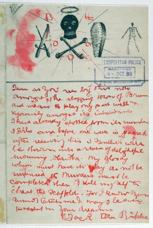 Tässä on yksi tuhansista poliisin ja sanomalehtien vastaanottamista kirjeistä murhien teon aikaan. Se mikä kirjeesta tekee kiehtovan, on todennäköisyys että allekirjoittanut ei todellakaan ole Jack the Ripper. Kyseessä on sama tappajan ihannointi jota julkkismurhaajilla on kyky herätellä tänäkin päivänä. Kirje on osoitus samaistumisesta jonka murhaaja aikaansai lehtiä lukevassa yleisössä.
