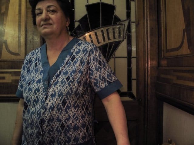 Tämä nainen näkee tähtiä. Maria Pellicci emännöi Lontoossa Pellicci-kuppilaa. Sata vuotta sitten perustettu syöttölä on nykyään erityisesti elokuvaväen ja poppareiden suosiossa. Kun kysyin saanko ottaa kuvan helsinkiläiseen lehteen Maria näytti hiukan epäilevältä.