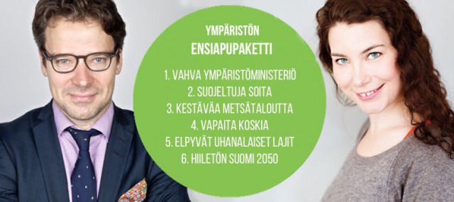 Suomen lajeista noin 10% ja luontotyypeistä peräti yli puolet on uhanalaisia. Ilmastonmuutos on kenties kauaskantoisin ihmiskuntaa ja koko maapalloa kohdannut uhka, jonka pysäyttämisellä on kiire. Tässä Villen ja minun esittämä ensiapupakettia ympäristömme pelastamiseksi seuraavaan hallitusohjelmaan.