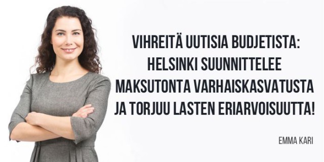 Helsingissä päätettiin tänään lähteä selvittämään siirtymistä maksuttomaan varhaiskasvatukseen. Samalla lisätään rahaa päiväkodeille, kouluille, leikkipuistoille ja lasten eriarvoisuuden torjuntaan. Nämä olivat kaikki vihreiden tavoitteita Helsingin budjettineuvotteluissa.