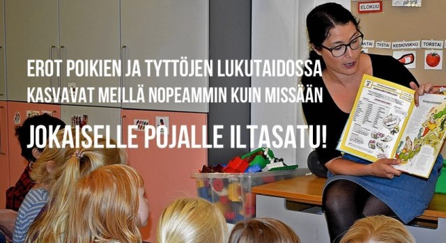 Suomalaisten poikien lukutaito on romahtamassa. Vuonna 2000 suomalaiset olivat maailman ykkösiä sekä tyttöjen että poikien sarjassa. Siitä lukutaito on laskenut enemmän kuin lähes missään muussa vertailumaassa. Huolestuttava asia on se, että ero tyttöjen ja poikien välillä on revennyt suuremmaksi kuin muissa länsimaissa.