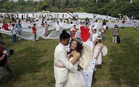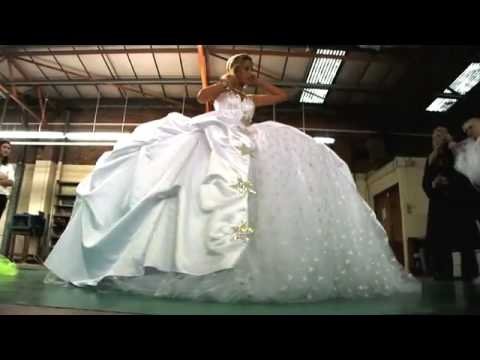 Romanialaisten muotisuunnittelijoiden suunnittelema maailman pisin häämekko ja sen laahus, joka on 2750 metriä pitkä. Mekko pääsi Guinnessin maailmanennätysten joukkoon. Katsotaas vielä toinen kuva.