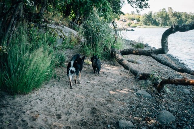 Näistä helteistä ihmisten nauttiessa monet koirat kärsivät. Helsingissä on aika vähän koirapuistoja joissa koirat pääsevät vapaana uimaan. Näistä Rajasaari on ehdoton lempparini, se on saaren puolikas josta on tehty koirapuisto. Täältä löytyy kunnollinen iso hiekkaranta missä koirat pääsevät juoksemaan ja lääniä löytyy sen verran paljon, että voi huoletta jäädä hiljaisemmallekin puolelle uimaan. Kävin täällä aikoinaan kävellen paljonkin ja koirani juostessa ympäriinsä makasin kallioilla ottamassa aurinkoa. Nykyään pakataan välillä koira autoon ja ajellaan tuonne nauttimaan illoista, jolloin ihmisiä on paljon vähemmän.