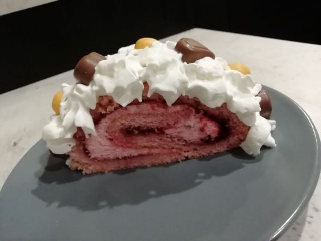 Leikkaa kääretortusta mieleisesi palat, tee kermavaahdosta mieleisesi pursotus ja koristele karkeilla. Vinkki: kaupasta saa valmiita kermavaahtopurkkeja ja maraboun sydänsuklaa karkkeja koristeluun!
