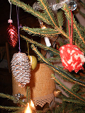 Ojentaa käden kuusta kohti. Tarttuu oksaan kiinni. Pistelee. Irrottaa otteen. Puhaltaa sormiin. Ojentaa käsivarren uudelleen, ja hellästi, hellin sormin, empien heilauttaa palloa puussa. Eikä mitä tahansa palloa, vaan palleroa jonka itse tehnyt on. Koreinta kaikista koristeista. Pehmeintä, lämpimintä.