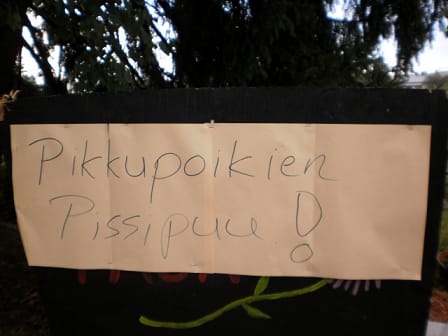 Siihen hätään olisi ollut järjestäjien apu lähellä: vierellä istuja näytti kylttiä, mutta arkaillen sinne oli mentävä – se kun näkyi sekä katsomoon että näyttämölle saakka =
