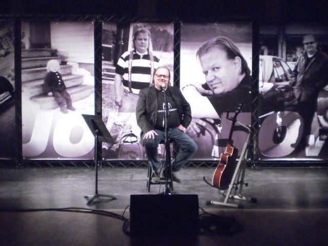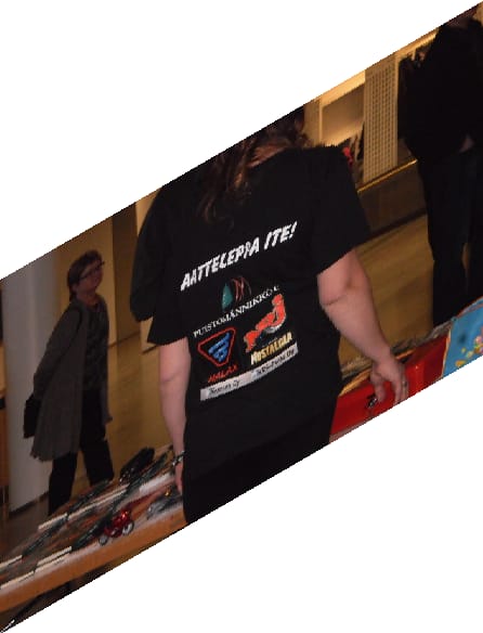 Kahvitauolla lampsii muina miehinä myyntipöydän tuntumaan, missä vaimo myy jopea, ja kirjoittelee muutaman nimmarin; oma poika leikkii appiukon? kanssa siinä jaloissa.
