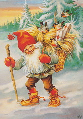 Kolmas kortti, tuo taakankantaja tonttu – munkkiveljestön nimityksiä muunnellen – tuo kontteineen levon ja luonnonrauhan mukanaan, hymyn ja hyvän mielen. On ilmeinen tonttujen [b]Assisilainen[/b], [b]F[/b], Jumalan pieni köyhä, lintujen ruokkija. Serkku haluaa tiedottaa tällä noin, ilmeisesti.