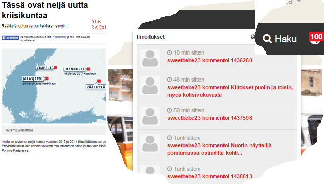 Ihanalla sweetbebemäisellä [url=http://w3.sweetestnews.fi/news/87253]alvittomalla Attendolla[/url] ei tietenkään ole asian kanssa mitään tekemistä, päinvastoin, sehän auttaa kuntaa velkakierteessä, kuten lehdestä (KK3.6.) luemme (Attendon kuntaturvajohtaja Pitkälä): [i]"mekin olemme lainoittaneet Rääkkylän kuntaa"[/i].
