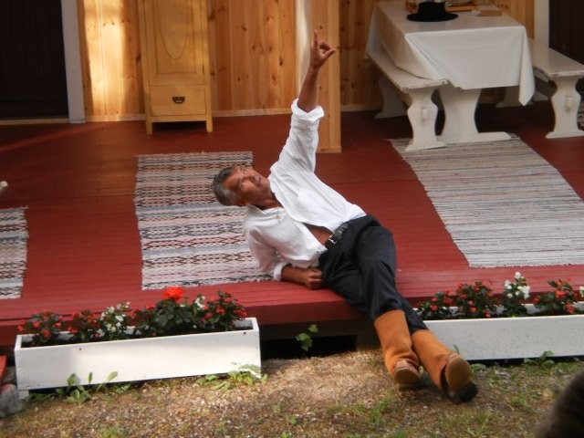 Rempseätä meininkiä ja ystävällistä, kaikenkaikkiaankin kahveineen pullineen. Ja mikä helpotus ja vapautus: esityksen alussa soi haitari eikä mahat ravalle pelottelevaa uhkausta ja heristelyä kuvauskielloista ja kännyköistä, ei mainintaakaan. Ammattiteatterista kun kumminkin kyse.